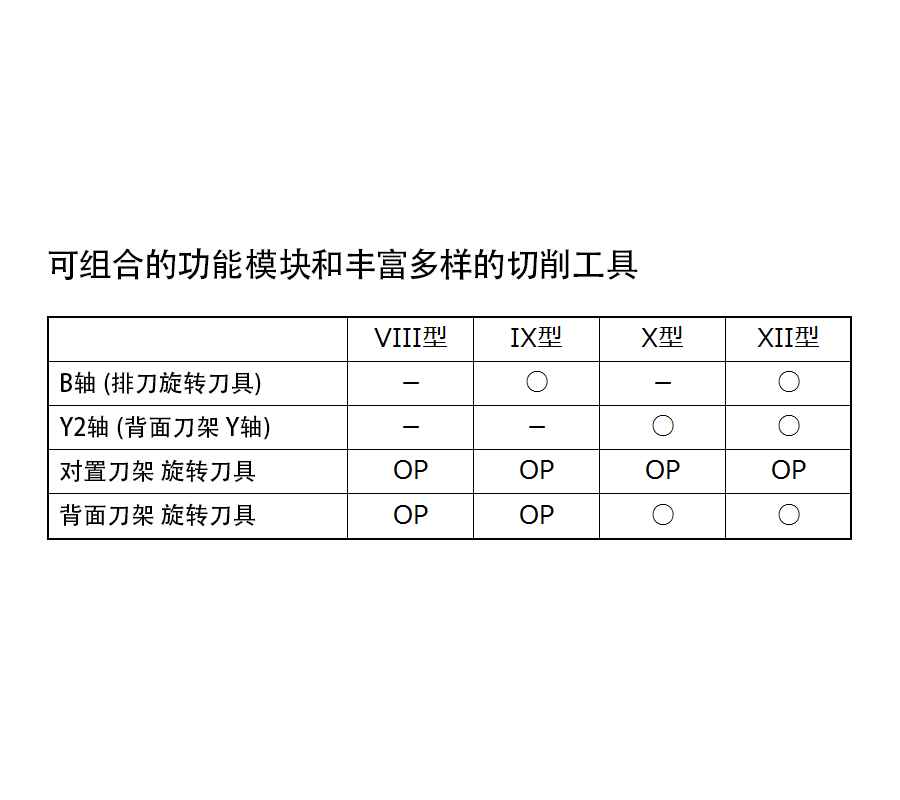 | 对向刀具台旋转刀具最大钻孔直径 注)所有型式均为OP | ø8mm | ||||