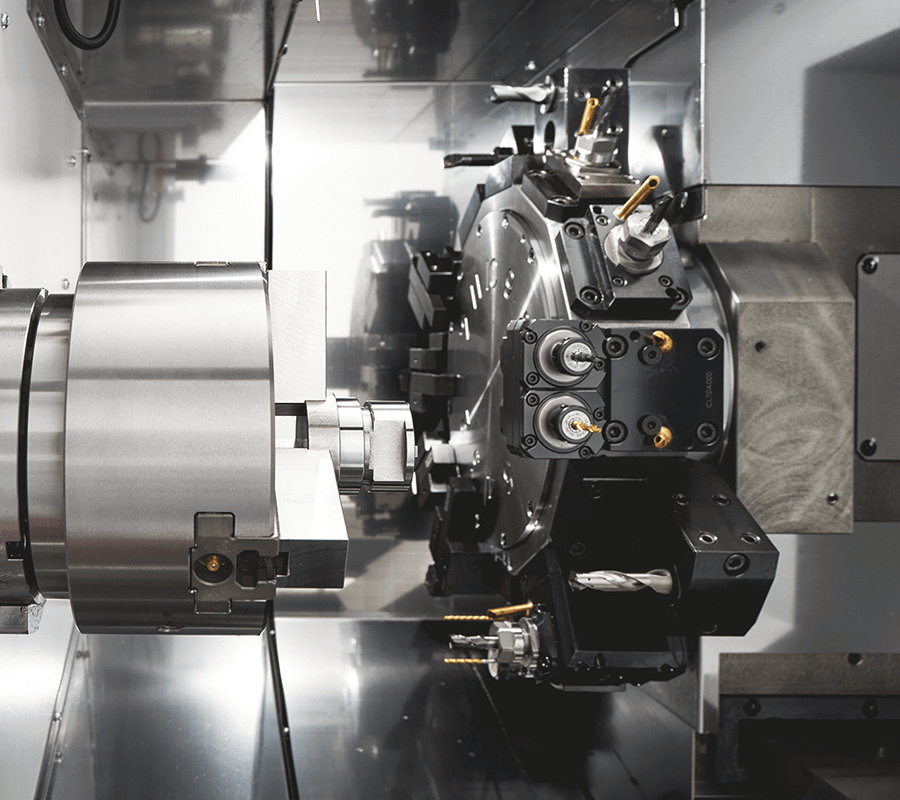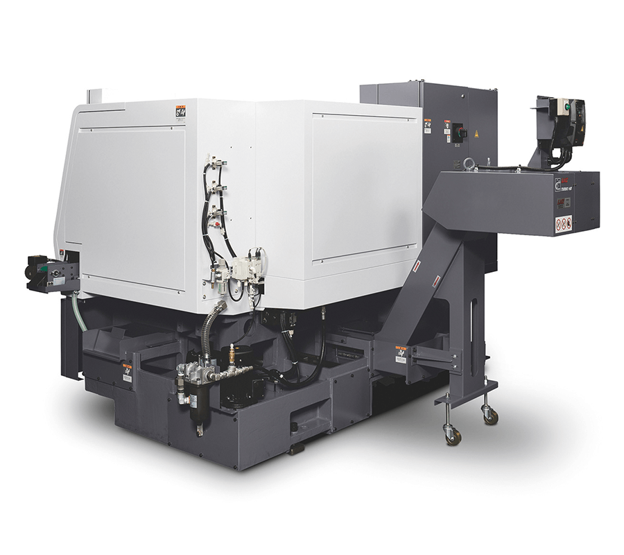 虽然是1个主轴1台转塔的简单构造,但可通过搭配动力卡盘以及选配后排式排屑机,与桁架式机械手组合,便可实现卡盘机的自动化生产线。