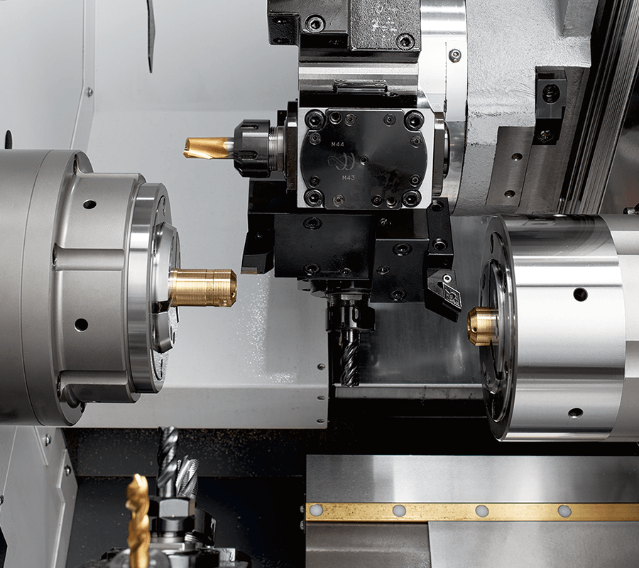 搭载了Y轴的2个12工位刀塔与双主轴的机械构成,在实现了重叠加工、左右同时加工等高效率加工方式的作用下,大大的缩短了加工周期。