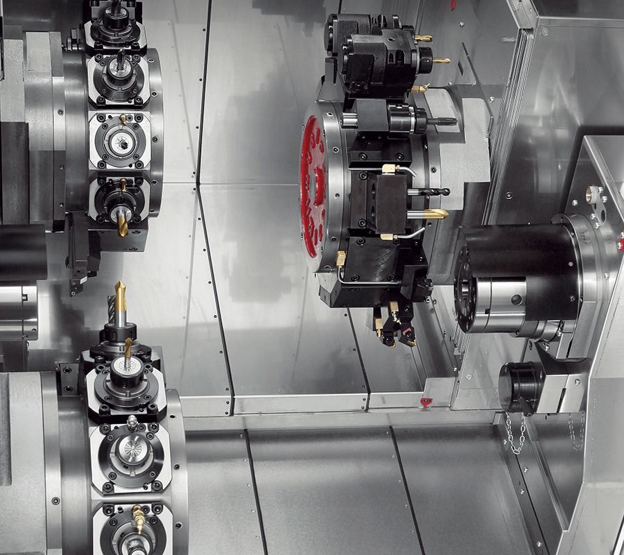 能实现不受加工平衡制约的最佳的工序分配和灵活的刀具配置。还通过40Nm旋转工具实现高刚性、高扭矩。还能完成宛如加工中心一般的复合加工。
